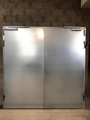 Ворота распашные (3,0 мм+1,4 мм рекомендовано при размерах более 3*3 м) противопожарные Ei60 / технические двупольные равнопольные: короб закрытого типа усиленный из сложно гнутого профиля из стали З мм, с / без порога, короб угловой с наличником по 50 мм / торцевой / разборный (при необходимости делаем по умолчанию). Полотна коробчатого типа (типа «СЭНДВИЧ») из стали 1,4 мм с наполнением базальтовой плитой 60-80 мм и усилением по периметру профилем, петли капли 160*25 мм по З шт. на полотно. Замок «Страж» с черной ручкой на планке на рабочей створке, не рабочая створка на шпингалетах (при необходимости ставим гаражные задвижки по умолчанию). Уплотнение по периметру (Е+Д), термолента (если Ei60). Ral стандарт шагрень, открывание только наружу.